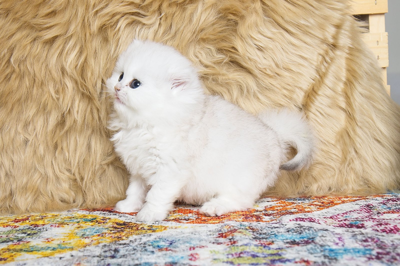 Monty Star is a long-haired boy presented in a truly unique light silver coat. Kittens like him are extremely rare — in our six years of breeding, he is the first with this exceptional color and type.